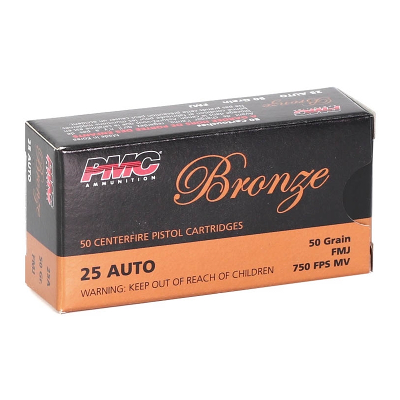 PMC BRNZ 25ACP 50GR FMJ 50/1000PMC BRNZ 25ACP Ammo 50GR FMJ 50/1000 | 50gr | n/a | 50 | $20.13 | $0.40 | Armed In Michigan |