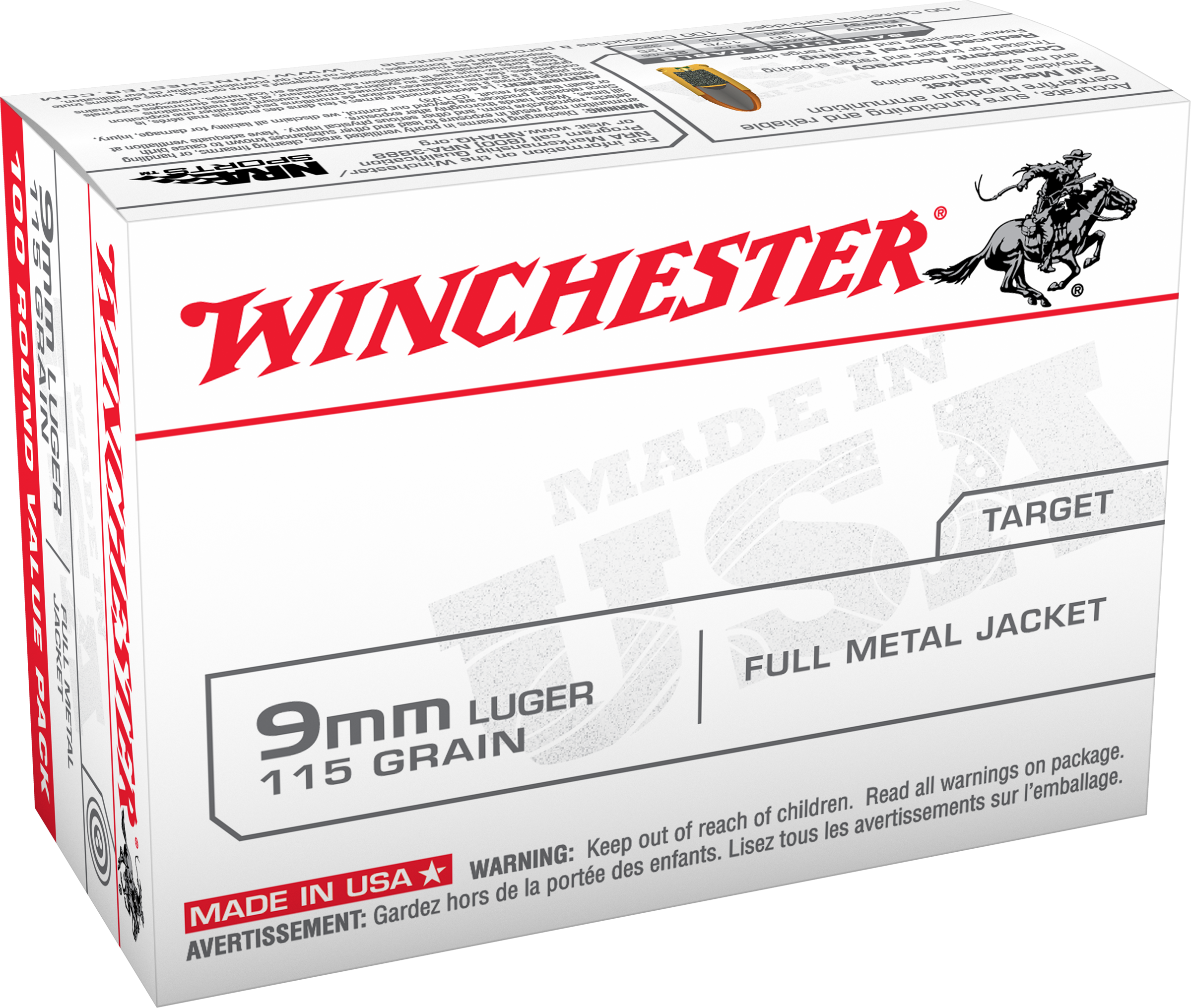 9mm - Win Ammo Usa Ready Luger -Match FMJWin Ammo Usa Ready 9Mm Luger 115Gr. Fmj-Match 50-Pack Red9 | 115gr | n/a | 50 | $14.16 | $0.28 | FoundryOutdoors |