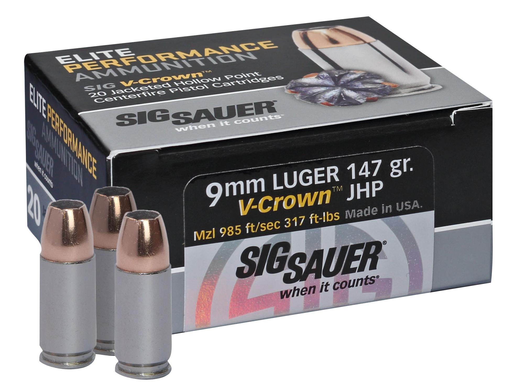 45 ACP/Auto - SIG Ammo Elite V-Crown 20- JHPSIG Ammo .45 ACP 185gr. Elite V-Crown JHP 20-Pack | 185gr | n/a | 20 | $22.47 | $1.12 | FoundryOutdoors |