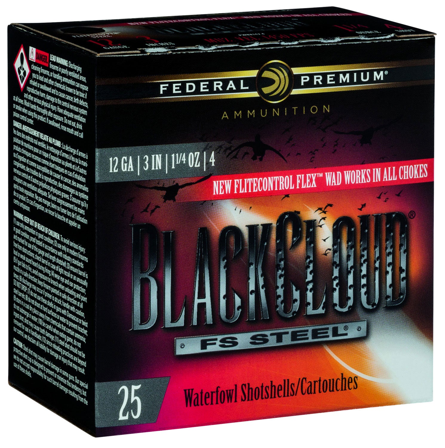 12 Gauge - Federal Black Cloud FS Steel 1-1/4ozFederal PWBX1424 Black Cloud FS Steel 12 Gauge Ammo 3 1 1/4 Oz 4 Shot 25 Bx/ 10 Cs | 3" | #4 | n/a | 25 | $34.63 | $1.39 | FoundryOutdoors |